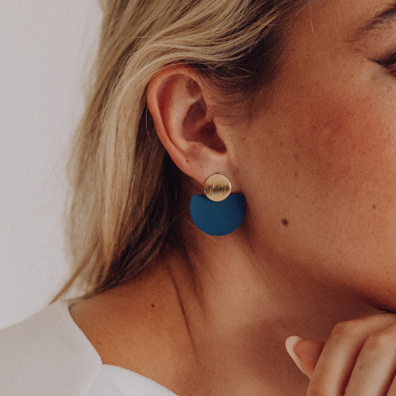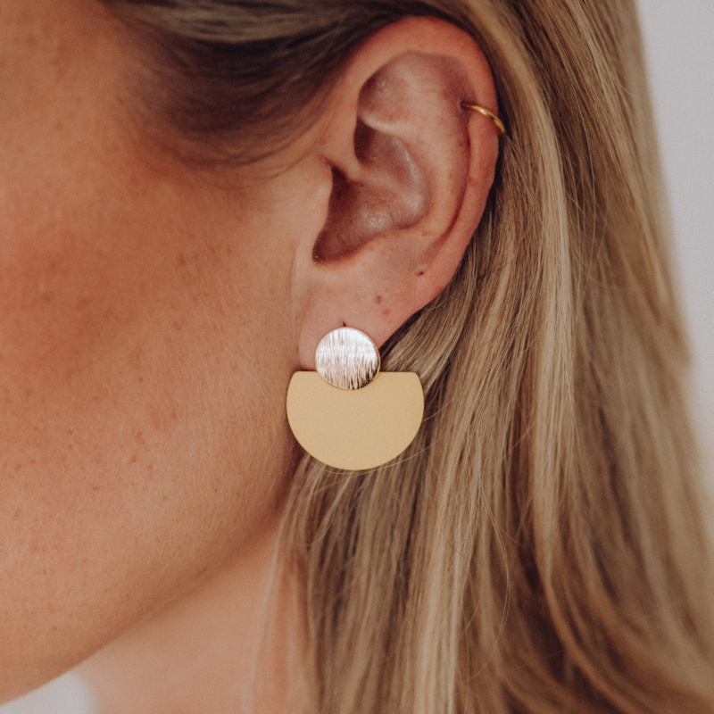 Ronde oorsteker in goud met onze hanger arco.